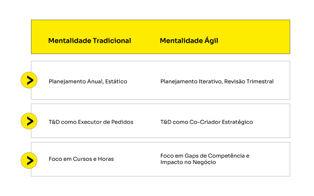 A Mentalidade Ágil transforma o T&D de um departamento que corre atrás do prejuízo para um Arquiteto de Futuros. Ela garante que a área de Pessoas se mantenha relevante, ágil e alinhada ao pulso da organização, mesmo em cenários de alta volatilidade.